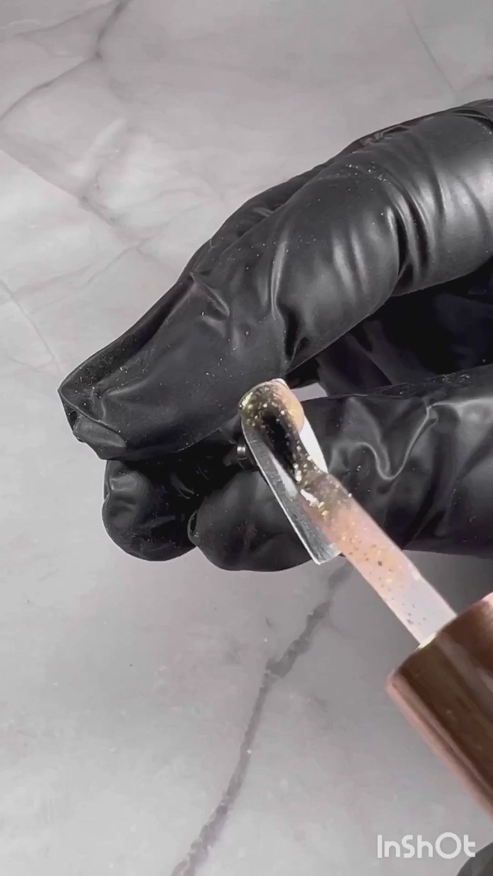 "A gold flaked, eggshell, nude tinted base gel. " - Katie