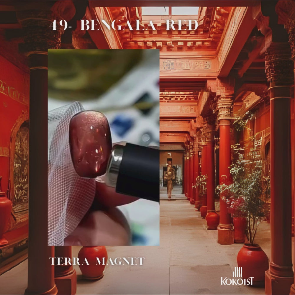 A sheer deep reddish-orange gel with ultra-fine champagne gold magnetic particles that when shaped with a magnet stick create a beautiful shine.
