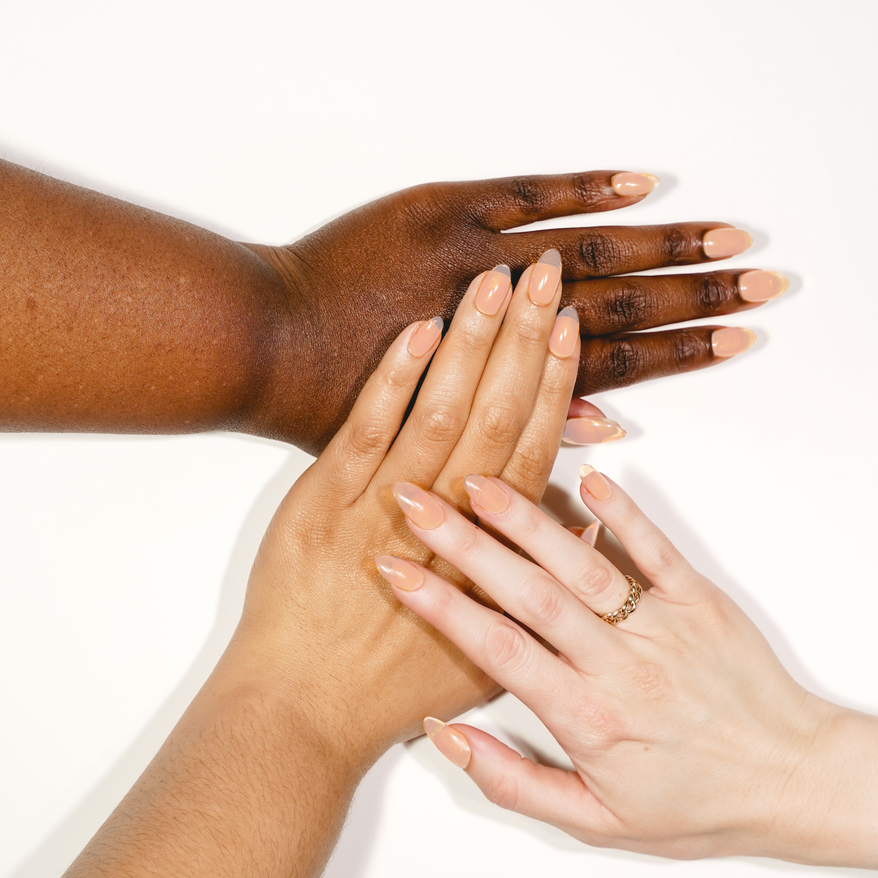 A soft peachy brown sheer base coat.