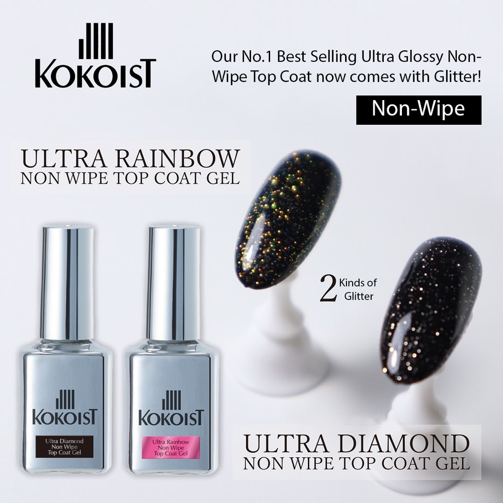 • KOKOIST Non-Wipe Top Gel will appear cloudy if cured for an insufficient amount of time or if the gel is applied too thick.